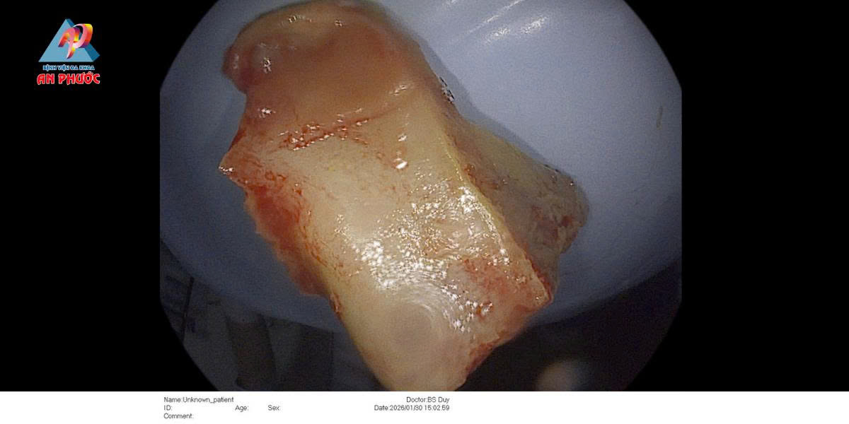 👉 Qua nội soi thực quản – dạ dày, BS. Lê Ngọc Duy – Khoa Chẩn đoán hình ảnh phát hiện mảnh xương heo dài khoảng 2 cm nằm ngang, 2 đầu cắm sâu vào niêm mạc 1/3 trên thực quản.