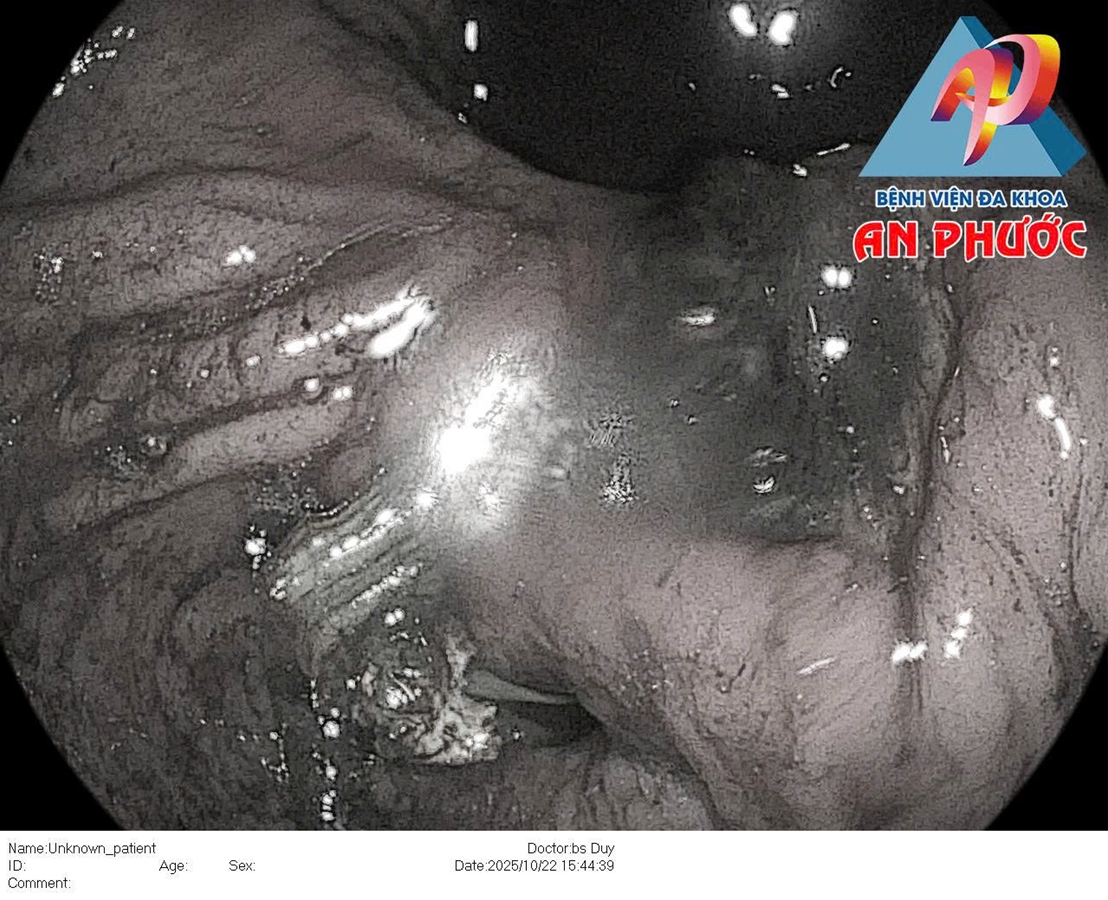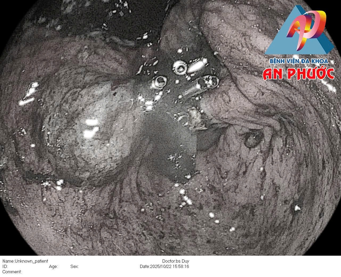 Đáng chú ý, tại góc bờ cong nhỏ xuất hiện ổ loét kích thước khoảng 20mm đang chảy m.áu thành dòng, có nguy cơ mất m.áu nặng nếu không được xử trí kịp thời.