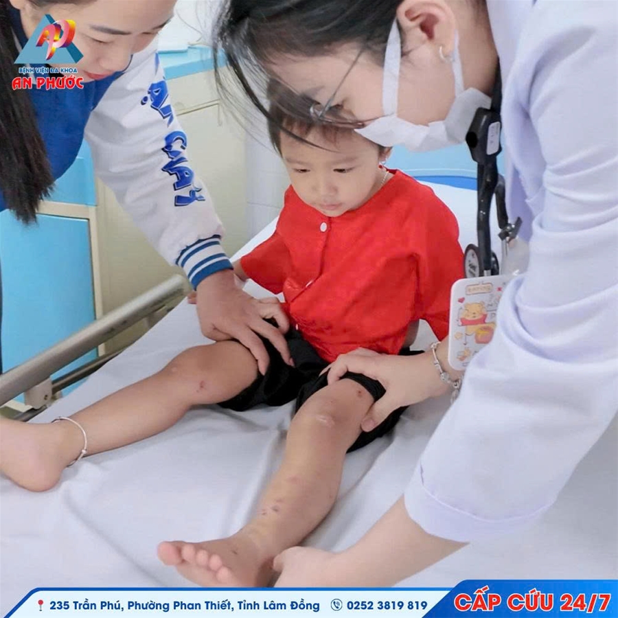 👉 Ngày 29/12/2025, Bệnh viện Đa khoa An Phước tiếp nhận bệnh nhi T.N.K.L, 28 tháng tuổi, nhập viện trong tình trạng sốt, vùng da chân xuất hiện nhiều mụn mủ, sưng đỏ và có dấu hiệu nhiễm trùng.