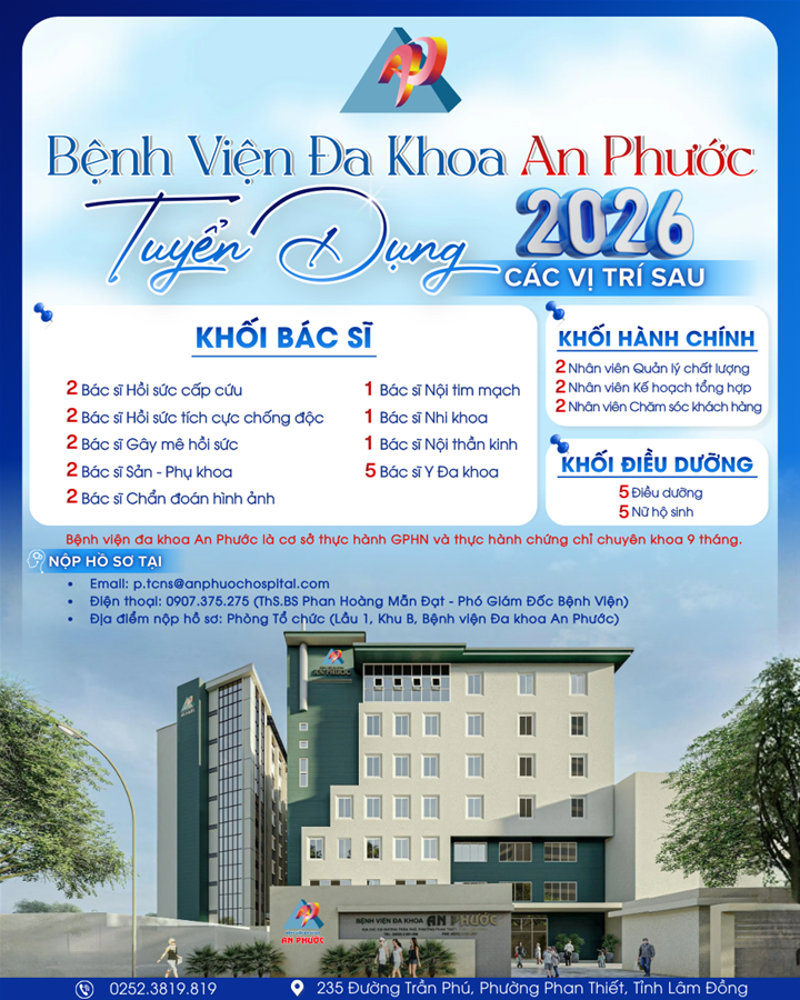 Căn cứ kế hoạch mở rộng và phát triển nguồn nhân lực 2026, Bệnh viện An Phước thông báo tuyển dụng nhân sự các vị trí cụ thể như sau:
