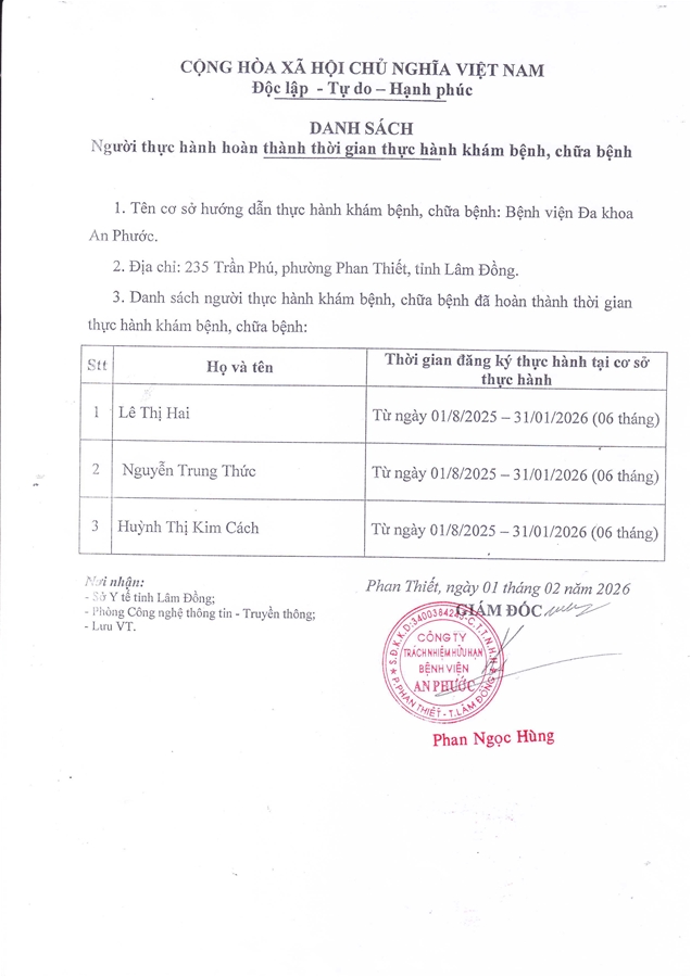 BỆNH VIỆN ĐA KHOA AN PHƯỚC Địa chỉ: 235 Trần Phú, phường Phan Thiết, tỉnh Lâm Đồng, Việt Nam Tel: (0252) 3 831.056 Hotline Chăm sóc khách hàng: (0252) 3 819 819 Fax: (0252) 3 831.057 Facebook: benhvienanphuocbinhthuan (Bệnh viện) Facebook: phongkhamanphuoclagi (Phòng khám Đa khoa An Phước - La Gi) Email: info@anphuochospital.com Copyright © 2002-2016 Bản quyền thuộc về Bệnh viện AN PHƯỚC Thiết kế bởi Tính Thành